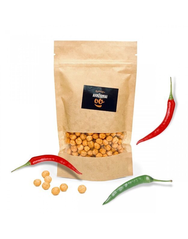 Sudėtis: Skrudinti avinžirniai (92%), prieskonių mišinys 8% (gliukozė, ryžių miltai, valgomoji druska. kvapiosios medžiagos), rapsų aliejus, prieskoniai: rūkyta paprika, džiovintos daržovės (pomidorų milteliai, svogūnai, česnakai, malto-dekstrinas, lipnumą reguliuojanti medžiaga E551, rūgštingumą reguliuojanti medžiaga E330, E270. Sudėtyje gali būti riešutų pėdsakų. Laikyti sausoje vietoje, (20±3) ℃ temperatūroje. Geriausias iki: žr. ant pakuotės.
